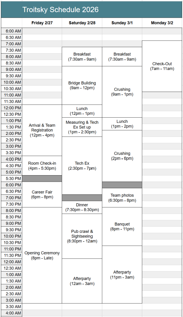 Interested in helping the Troitsky Bridge Building Competition and its great competitors achieve their goals? Contact our External Team to learn more about how you can be a part of our vision for a more enriching competition!